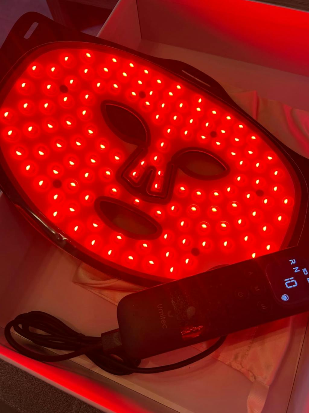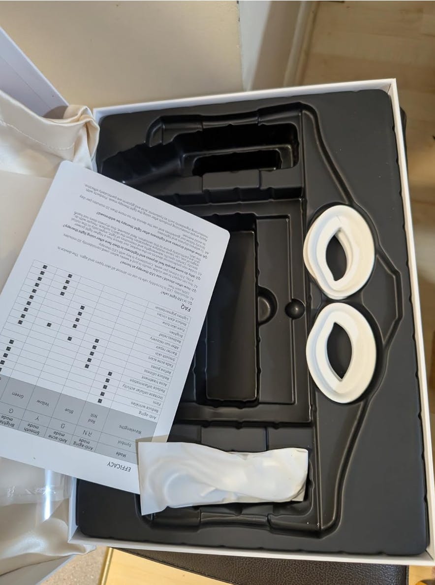 I have wanted to try a light mask for the longest time and this doesn’t disappoint!Even after just 3 uses my skin feels smoother and I can see redness starting to reduceI am very excited to see how much this can improve my skin with continuous use.It has a range of settings for many different uses and skin types , I also like that you can control the intensity and also the area of the face you would like it to targetEach session is 10 minutes so easy to use 3-5 a week without taking too much time out of your day. It’s also portable so you can walk around whilst wearing it.The three strap make it feel very secure on your face and it does not budge.I also like that it comes with different eye pieces so you can adjust these to perfectly suit your face shape and be very comfortable.The controller is very easy to use and move between the modes and settings. It also has a nice LED screen on it so you can see how much time you have remainingThe product is presented beautifully in a nice presentation box but also comes with a nice silky bag for you to store it in either at home or for travelOverall I am very impressed with this and can see how it would make a lovely giftGreat item