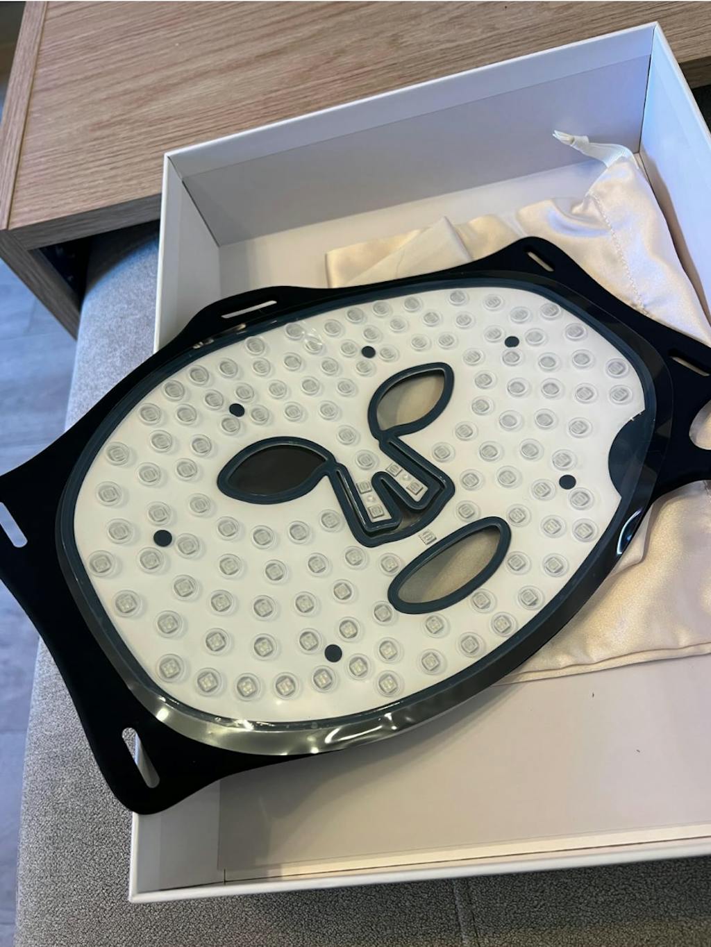 This LED face mask arrived super fast and I could see a difference after the very first session. The high-density LEDs and different light modes make it feel like a mini professional treatment at home. It’s comfortable, lightweight and the zoned design is a nice touch for targeted care. Really impressed so far—excited to keep using it!