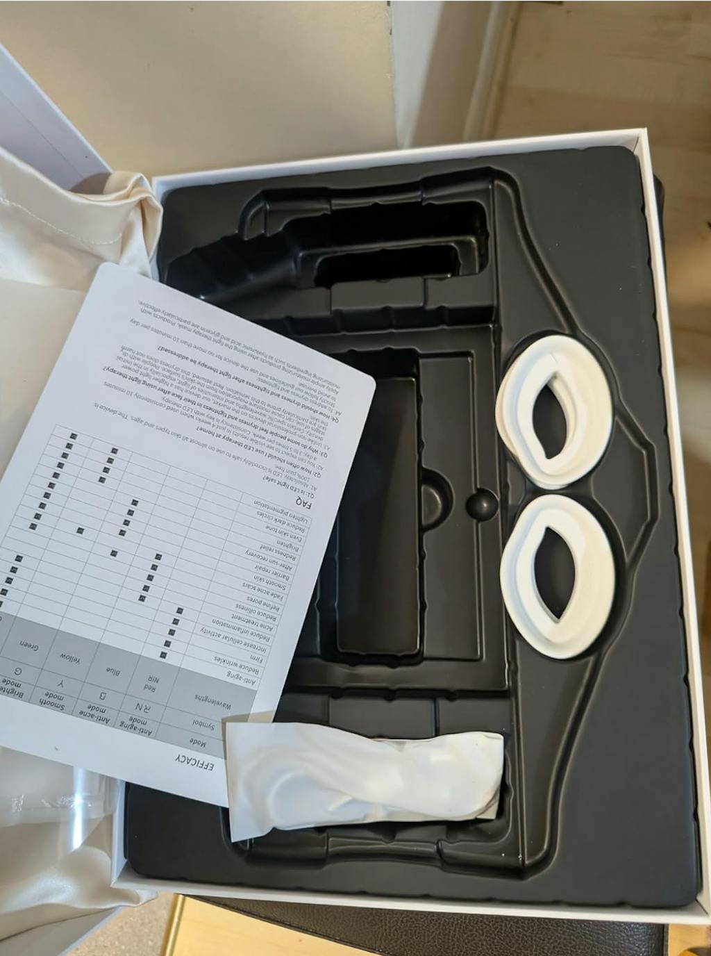 I had heard so much about this product and after lots of research I ordered this.The packaging was so nice and impressive but what’s more impressive is the result. I am seeing difference after two sessions, and am confident it will be more effective after every session.It has 4 different lights with different functions and the booklet inside explains everything, so if you have done your research it would be easier to understand the booklet and how the lights and mask works.I also did a 2-3 mins test before a full session to be careful.Its light weight as I travel a lot i wont have to worry about fitting it in my bag.I am happy with the purchase overall 9/10 recommended!!