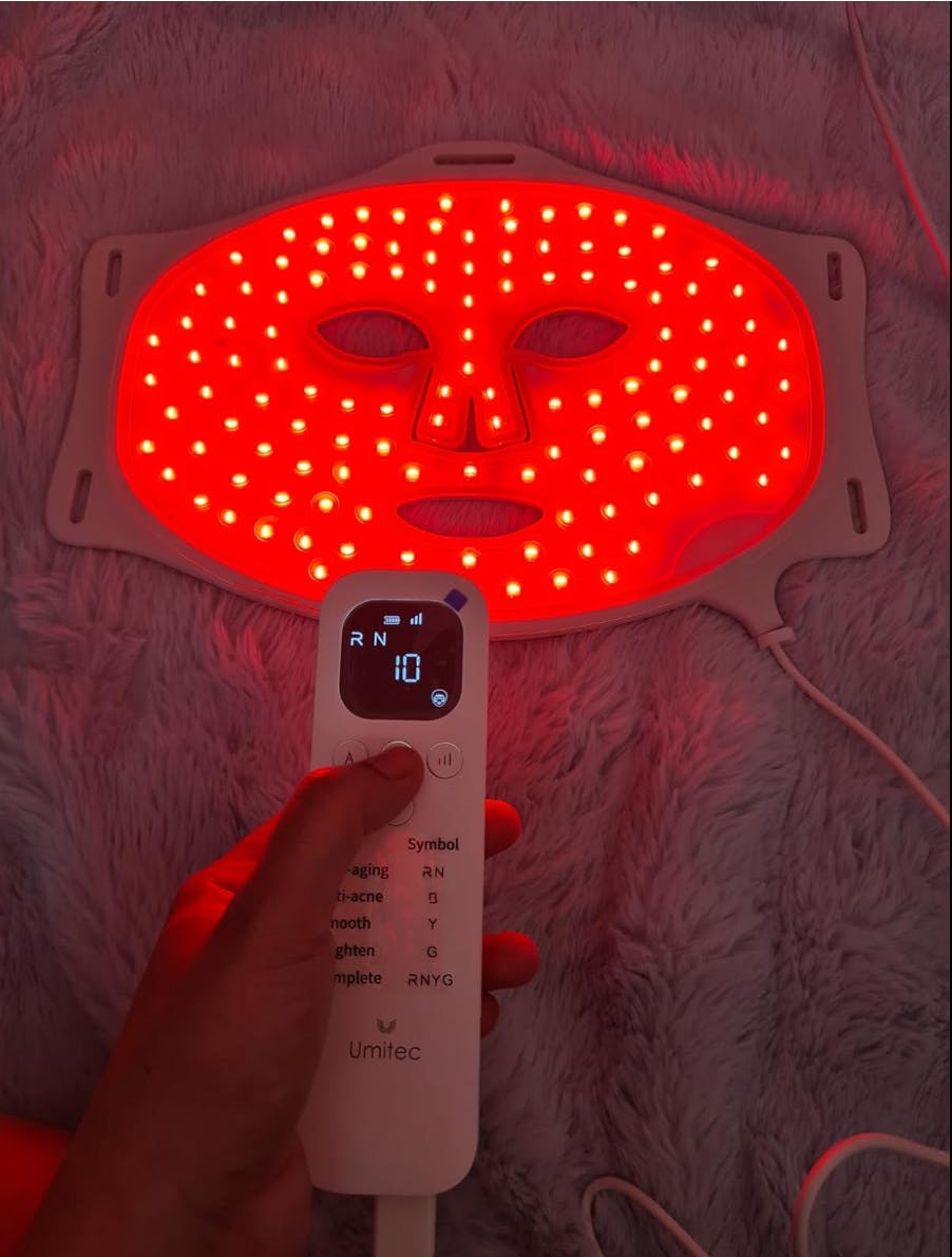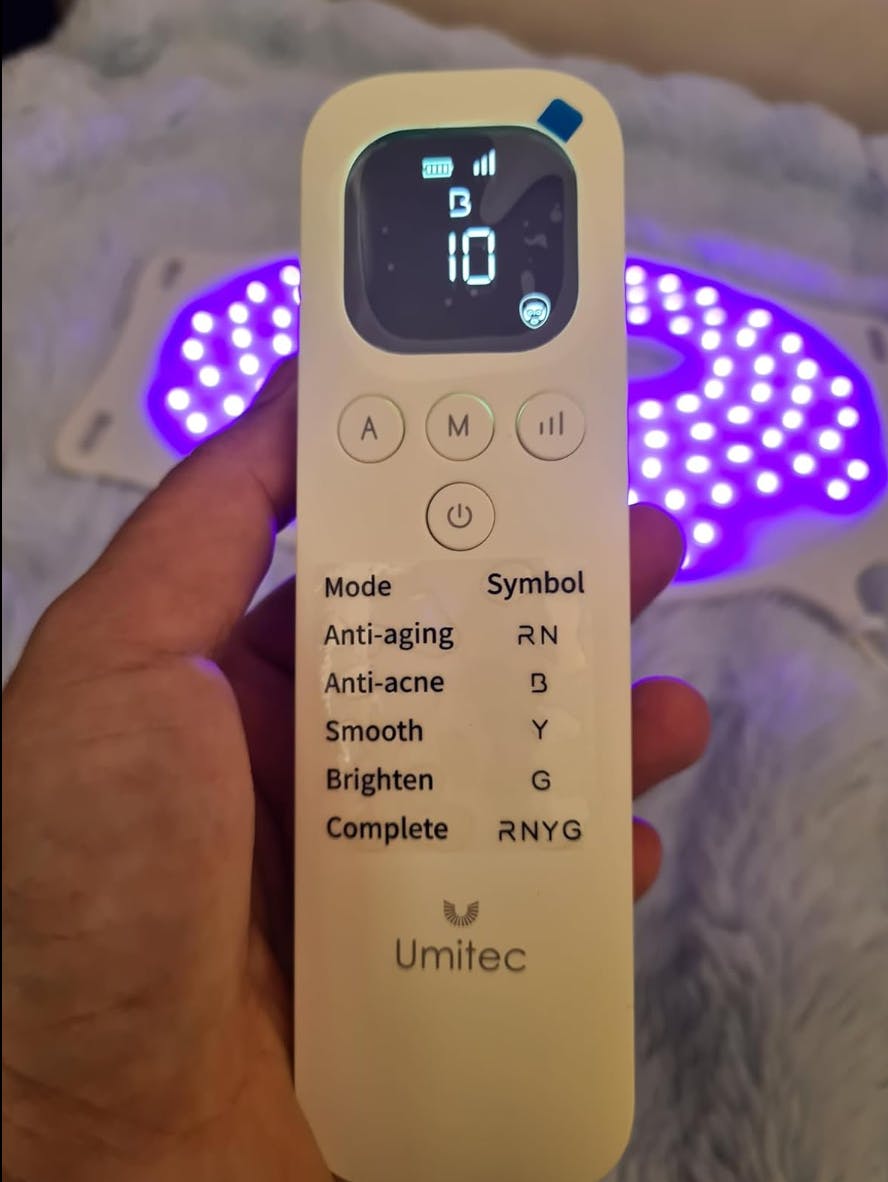 The five light modes are easy to switch using the remote control, and I mostly use the red and blue lights. After a couple of weeks, I've noticed my skin looks brighter and smoother, and some redness around my cheeks has improved.